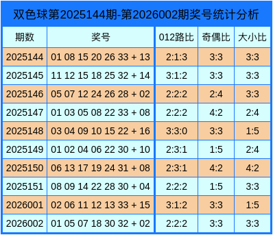上期归来:双色球2026002开奖号码为:01、05、07、18、30、32 + 02。