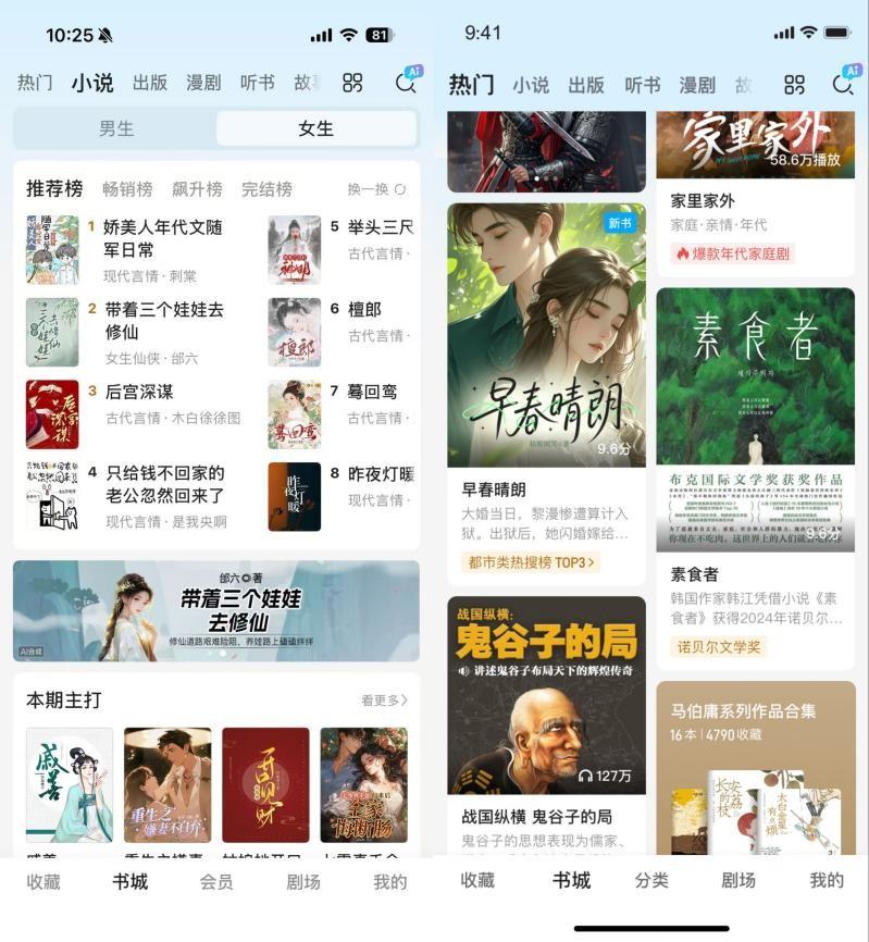 全新客户端构建 “书城”“戏院” 双频说念,并于“书城”频说念遴荐双瀑布流展示模式,将海量典籍与极品微短剧可视化同步呈现,用户滑动间即可终了文戏院景无缝切换。