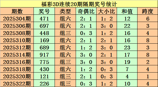 跨度:近5期跨度漫步在1-7之间,振幅为7点,漫步卓绝分散,上期跨度为4,重叠出现,本期看好跨度走小,柔顺跨度2。