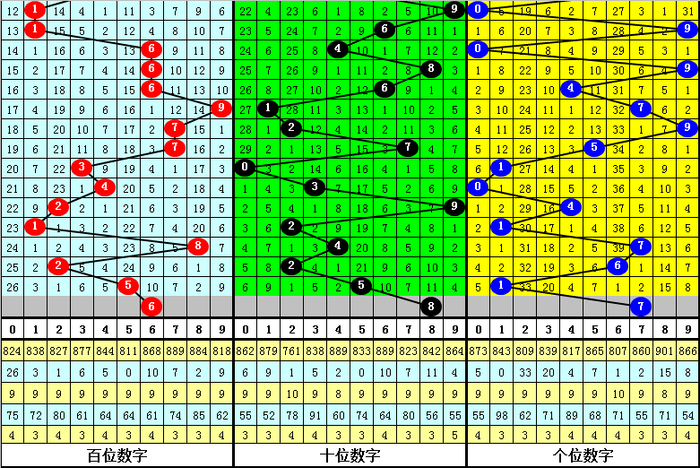 百位:2025319期-2025323期出号:21825,振幅为7点,漫步比拟分散,本期预测百位走大,参考6。